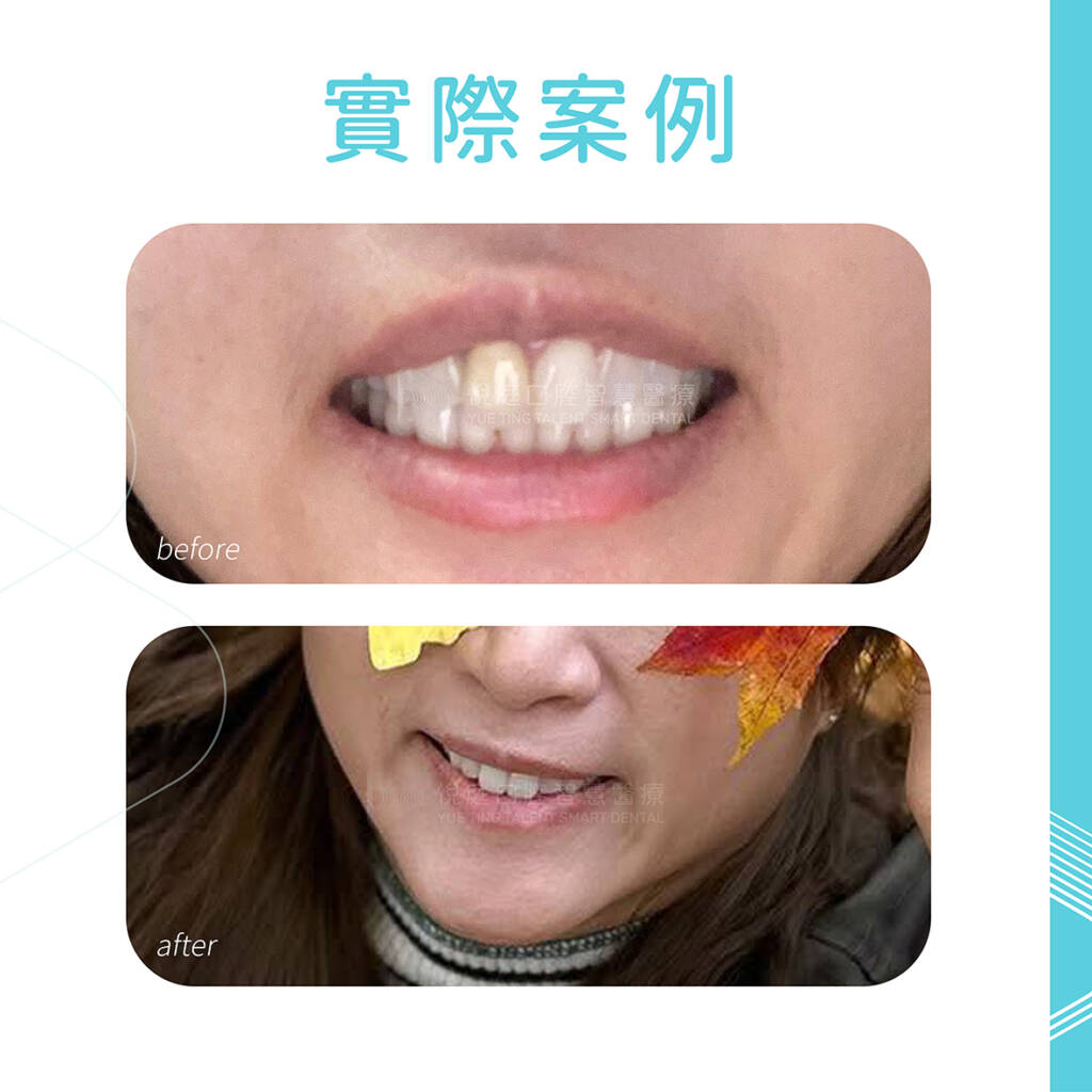 - 精準:數位 3D 口掃取代噁心的傳統印模,加上技師現場比色,做出來的形狀大小超級剛好。